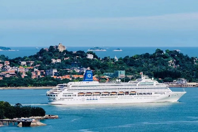 “鼓浪屿”号隶属于星旅远洋邮轮,由中国旅游集团和中国远洋海运集团强强联手进军国际豪华邮轮产业打造邮轮民族品牌的首艘邮轮,她极尽优雅,充满浓郁的贵族气息——经典的分层鸭尾设计,内部配以蒂芙尼玻璃置顶的挑高中庭,180度落地玻璃环绕的全景酒吧,宽阔的海滨长廊,空间充足,设施齐备,装饰温馨而亲切,是名副其实的海上桃花源。