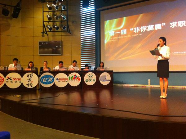 2014年5月21日下午,我司杨艳经理受邀作为参赛嘉宾参加厦门城市职业学院第一届“非你莫属”求职大赛。受邀参加此次活动的仅8家单位,分别来自不同的行业。参赛选手共7位,最终两名参赛选手获得了企业聘书。