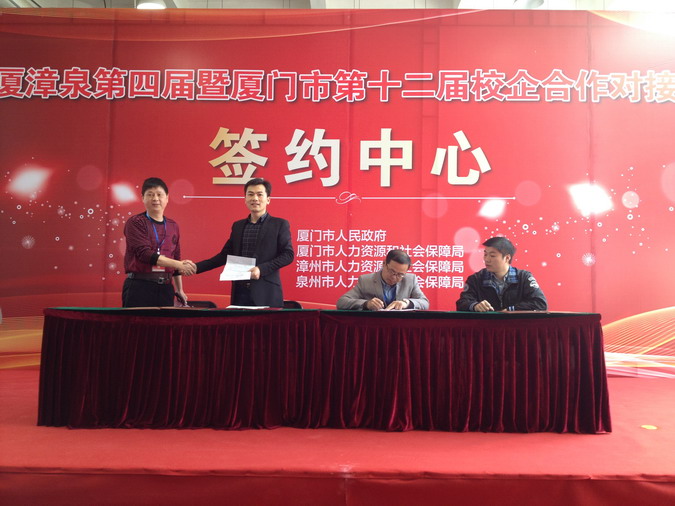2015年3月29日,“厦漳泉第四届暨厦门市第十二届校企合作对接会”在厦门技师学院举办,我司作为企业代表参加了此次对接会。对接会由市政府主办,厦门市、漳州市、泉州市人力资源和社会保障局等单位承办。本届校企合作对接会突出了“深化校企合作,创新人才培养”的主题。