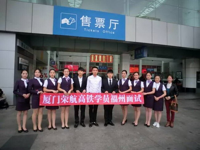 2016年4月15日,我司组织14名学员参加福州高铁面试,经过测量身高、自我介绍等面试环节,最终录用12名,通过率高达86%,可喜可贺.通过面试的学员于4月17日开始岗前培训,主讲老师有福州客运段的肖大平老师等.