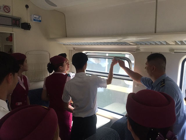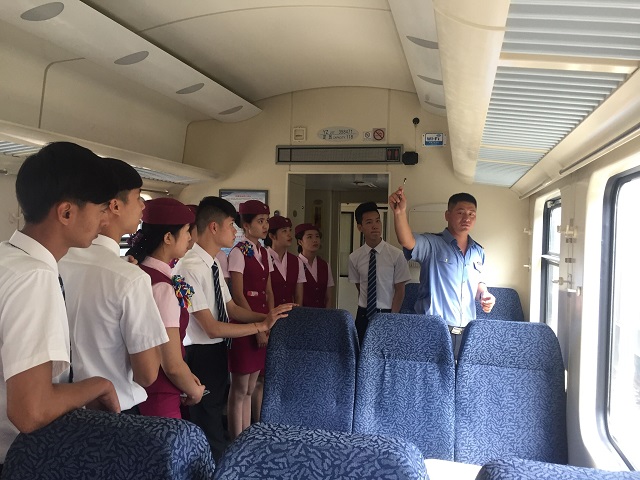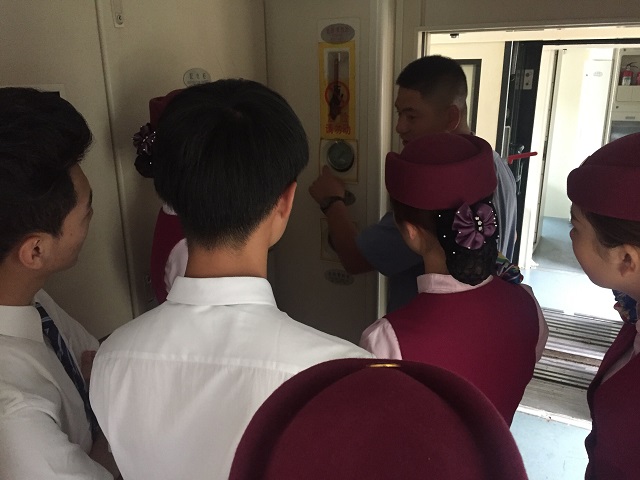 为了把理论与实践相结合,让学生更好的掌握理论专业知识,2017年6月8日,我司安排厦门华天学院荣航订单班16级高铁学员到福州客运段厦门整备基地上车实训,并邀请南昌铁路局福州客运段柴舜耀车长上车讲解,带领学生进行实操训练。
