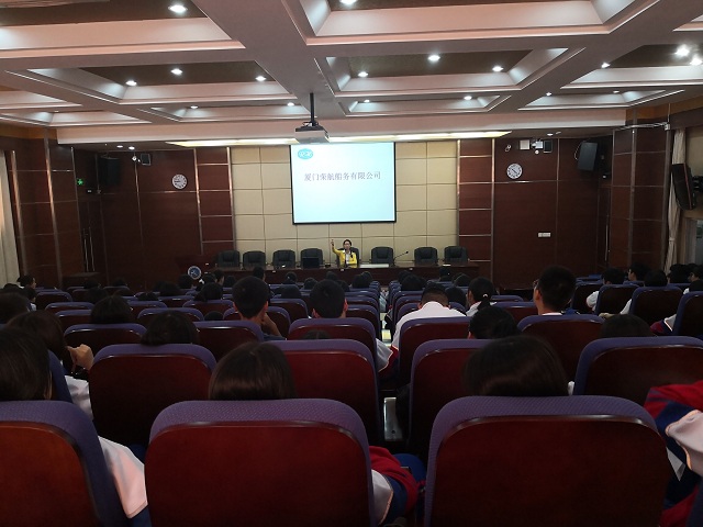 2019年11月27日,受厦门海沧职业中专学校的邀请,我司杨艳经理参加该校一年一度的企业文化进校园活动,给旅游科即将毕业的同学们开了一场生动的讲座。讲座中,杨经理结合邮轮高铁的工作环境、生活水平、设施设备以及多个以往出去实习的同学的真实案例向即将走上工作岗位的同学们讲述社交礼仪、工作心态、勤劳肯干及人际关系在初出社会工作过程当中的重要性。与此同时杨经理凭借自己多年积累的经验,告诫同学们要以饱满的精神、平稳的心态对待今后的学习工作,强调不断提高自己的综合素质,因为机会总是留给有准备的人,希望同学们都能实现自我价值和人生目标。