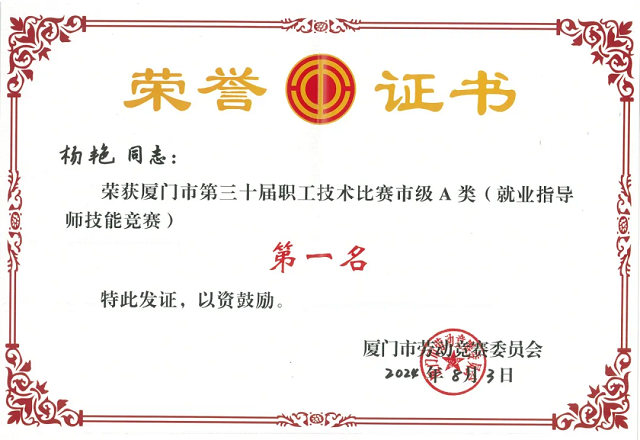 为贯彻落实习近平总书记关于技能人才工作的重要指示精神,提高我市就业指导师队伍的整体水平,2024年8月3日,由厦门市劳动竞赛委主办,厦门市总工会、厦门市人力资源和社会保障局、厦门市海沧区总工会指导的厦门市第三十届职工技术比赛A类就业指导师技能竞赛在厦门市人力资源产业园(海沧园)举行。