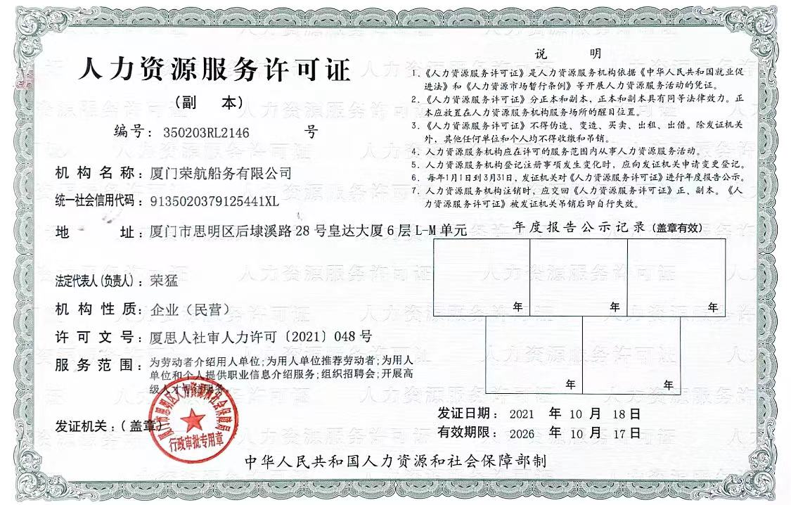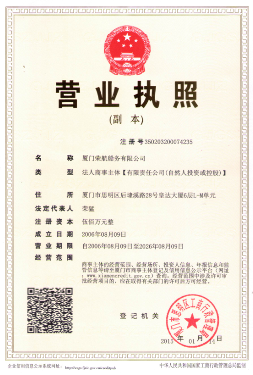 厦门荣航船务有限公司版权所有 常年法律顾问:杨跃锦律师