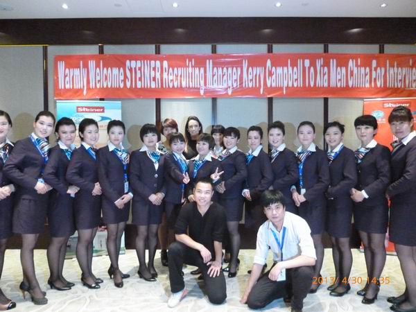 2013年4月30日上午9时许,由厦门荣航公司举办的英国Steiner公司邮轮SPA招聘在厦门凯宾斯基酒店4楼K2会议厅举行。集美大学“荣航海乘班”16位学员走上讲台,以其自信的笑容、流利的英语口语和娴熟的技能展现自我。