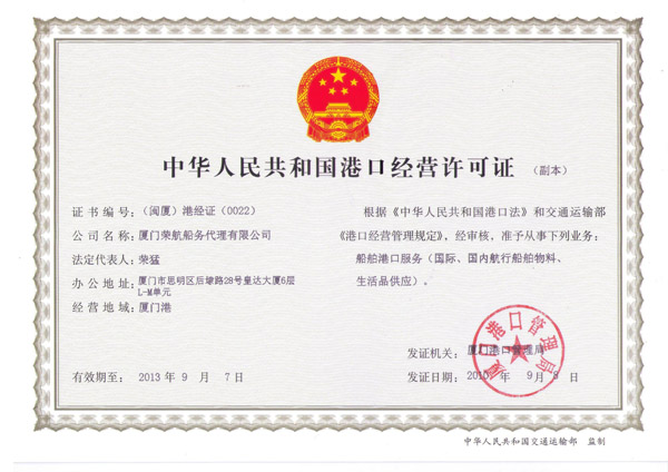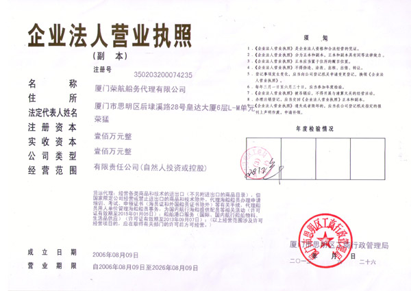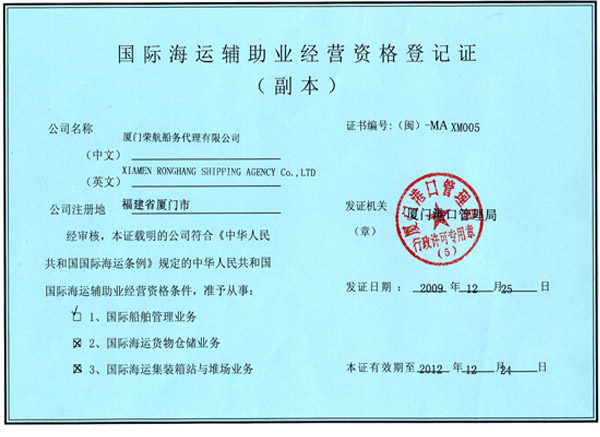 版权所有 公司名称: 厦门荣航船务代理有限公司 All Right Reserved